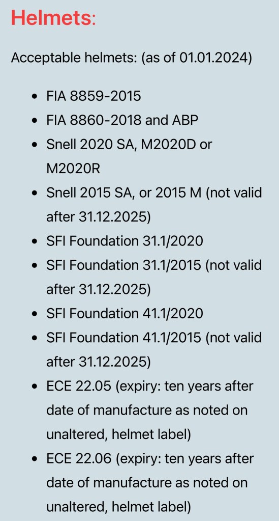 Believe it or not, you can’t just show up with any ol’ helmet and race. Helmets must be DOT AND SNELL approved, and not expired. You will have to check the tag located on the inside of your helmet. Below is a list of accepted helmets for the 2025 season.